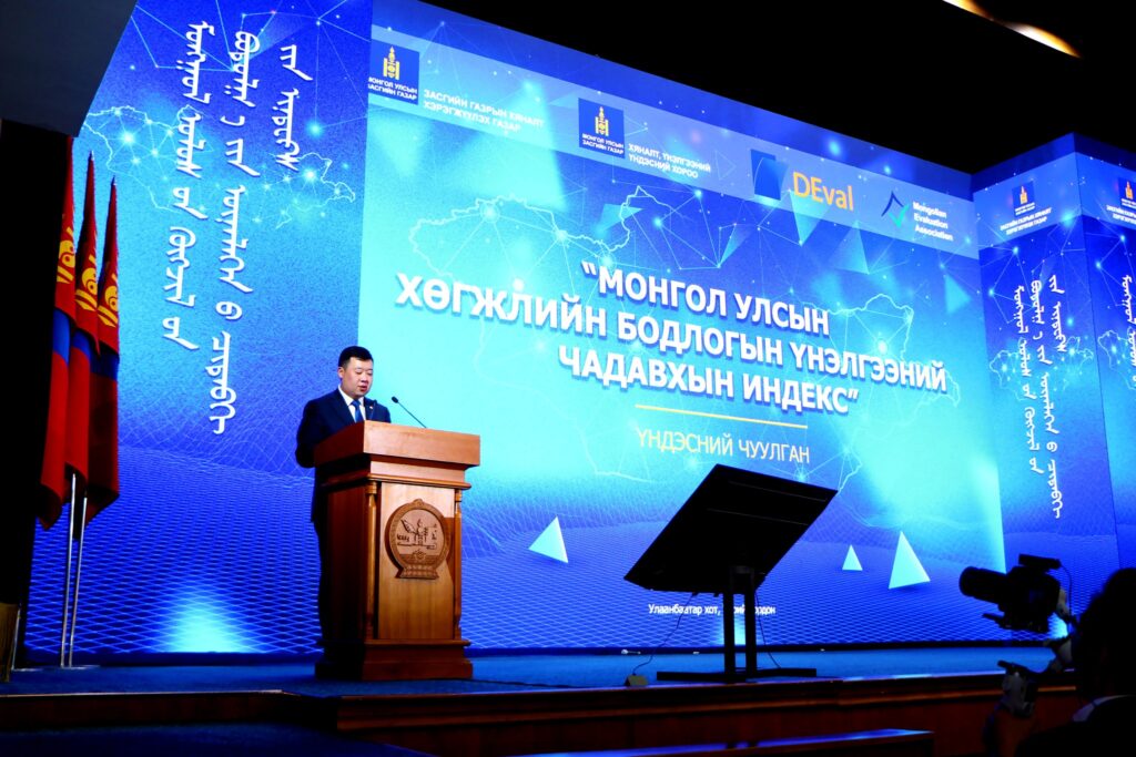 Энэ хүрээнд Засгийн газрын Хяналт хэрэгжүүлэх газар Холбооны Бүгд Найрамдах Герман Улсын Эдийн засгийн хамтын ажиллагаа, хөгжлийн яамны харьяа Хөгжлийн үнэлгээний байгууллага (DEval), Монголын үнэлгээний холбоотой хамтран “Монгол Улсын хөгжлийн бодлогын үнэлгээний чадавхын индекс” тогтоох үнэлгээг амжилттай зохион байгуулж, өнөөдөр үр дүнг танилцуулж байна.
