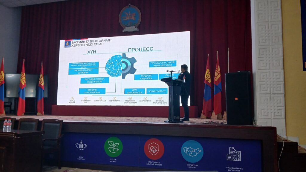 Сургалтаар Архангай аймгийн Засаг даргын Тамгын газар, орон нутаг дахь төрийн байгууллагын албан хаагчид, Төрийн болон орон нутгийн өмчит үйлдвэрийн газрын удирдах ажилтнуудын дунд Процессын дахин инженерчлэл, өргөдөл гомдлын шийдвэрлэлт, хяналт шалгалтаар илэрсэн зөрчил, дутагдал болон үнэлгээ мониторинг хийх үе шатыг олон улсын арга, аргачлалын дагуу боловсруулах /DME-Design Monitoring Evaluation/ зэрэг сэдвээр сургалт, хэлэлцүүлэг зохион байгуулж байна.